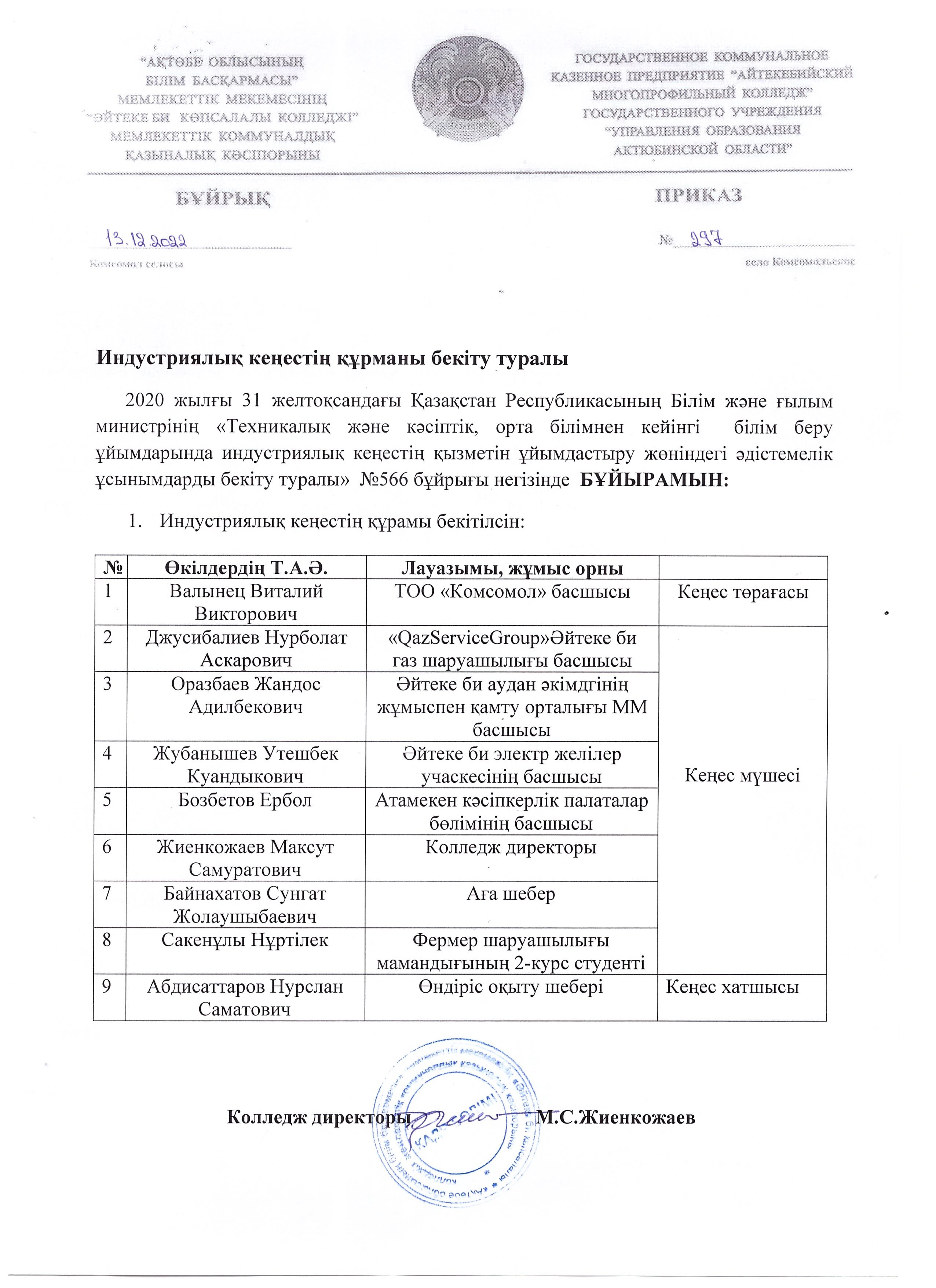 Индустриялық кеңес бұйрық