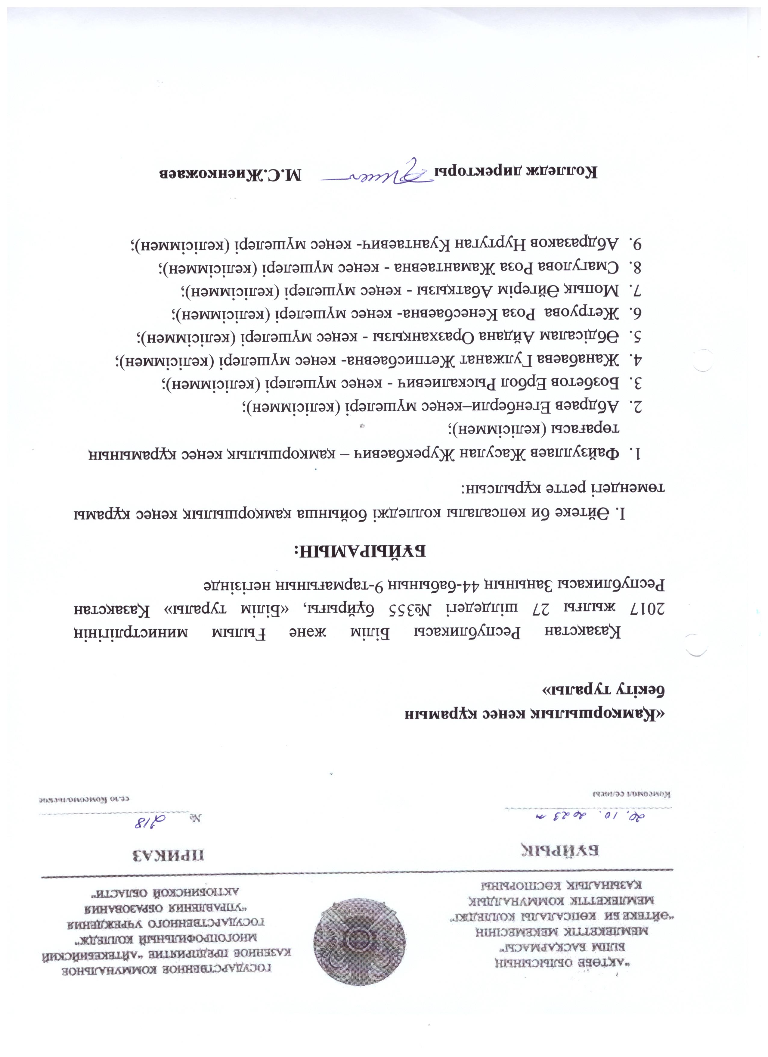 Колледж қызметкерлерінің Ішкі тәртіп ережесі