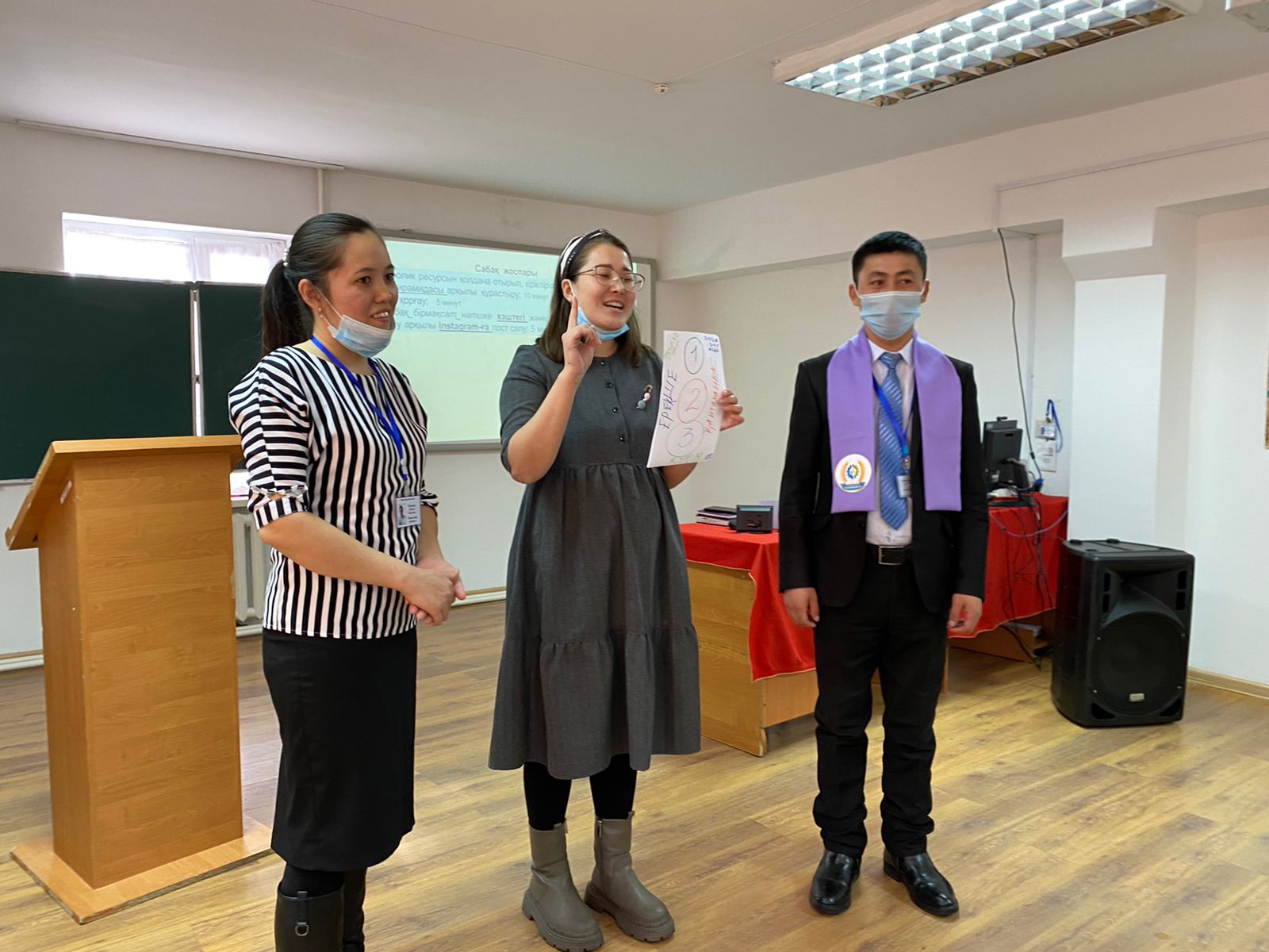 Тәжірибе алмасуда тренингтер ұйымдастырылып, оқытушылардың нәтижелі сабақ өткізу мақсатындағы іс-шаралары таныстырылып, видеороликтер көрсетілді.