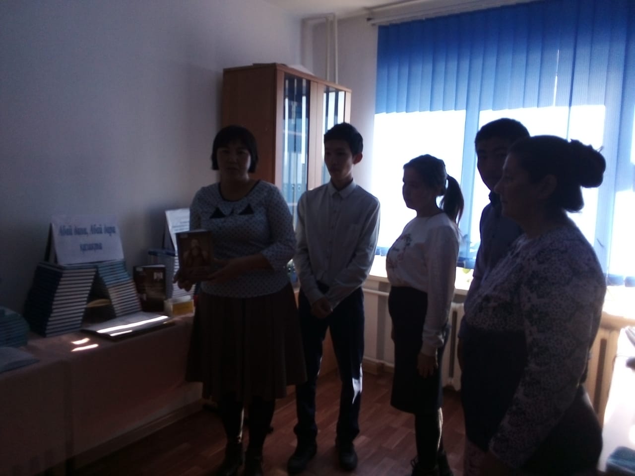 «Абай дана, Абай дара қазақта» атты кітап көрмесі ұйымдастырылды. Аудандық кітапхана қызметкері А.Ермағанбетова, Н.Дәрібаева ақынның шығармаларына библиографиялық шолу жүргізді. Көрмеге І курс студенттері қатысты. Студенттер бір –бірімен көрмеден алған әсерлерімен бөлісті.