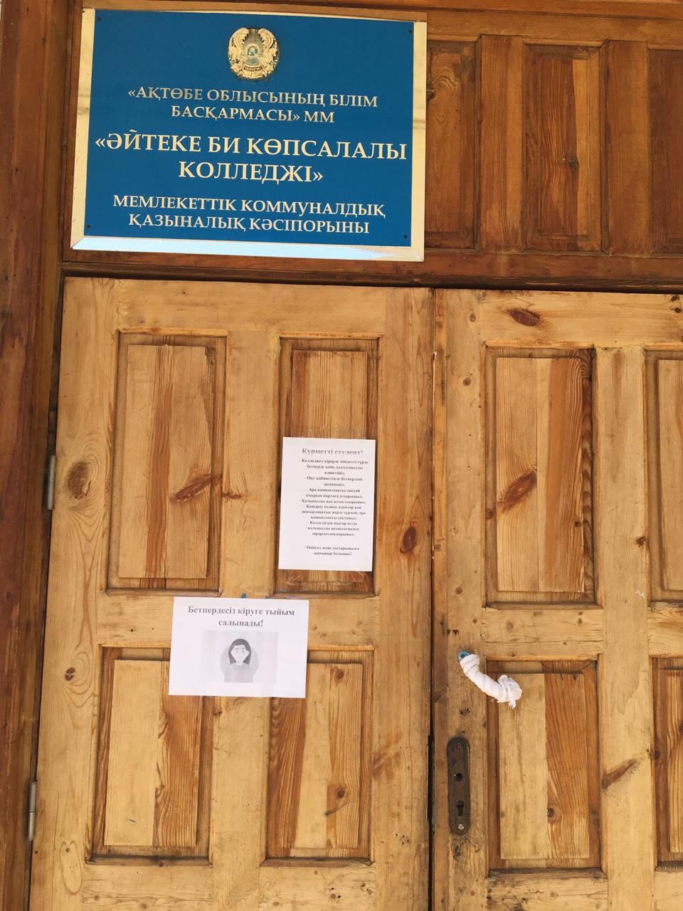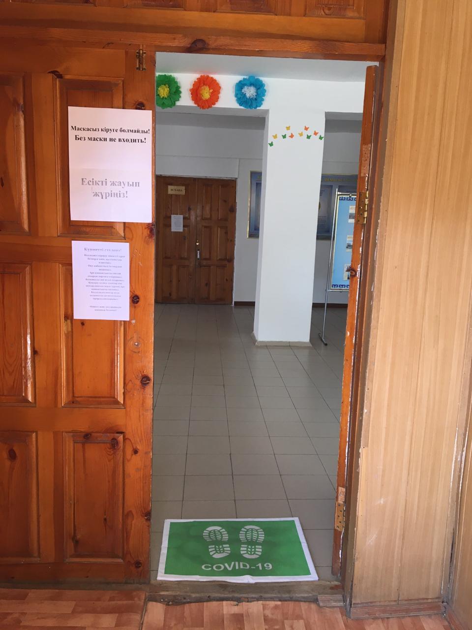 Сонымен қатар, оқу кабинетінің сыртқы есіктерінде колледжге кіре берісте санитарлық талаптарды сақтауға байланысты ескертпе қағаздары ілінді.