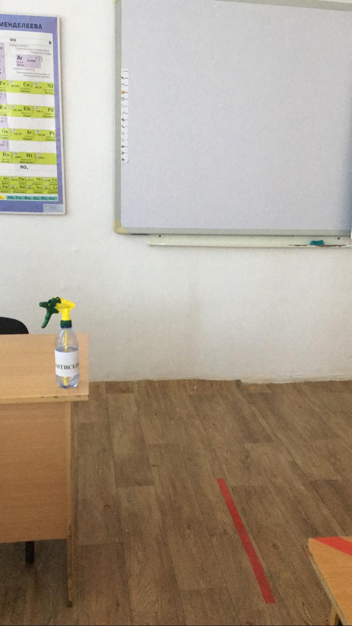 Оқу кабинеттеріне қолды залалсыздандыруға арналған антисептиктер қойылды.