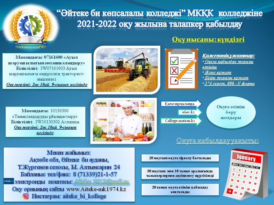 Әйтеке би көпсалалы колледжі МКҚК 2021-2022 оқу жылына оқуға қабылдау